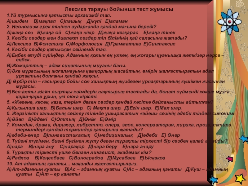 Слайд 4 Лексикология — сөз туралы ілім (лексикос —