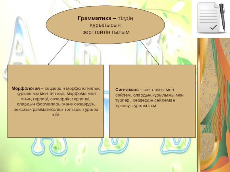 Синтаксис – сөз тіркесі мен сөйлем, олардың құрылымы мен түрлері, сөздердің сөйлемде тіркесуі туралы ілім