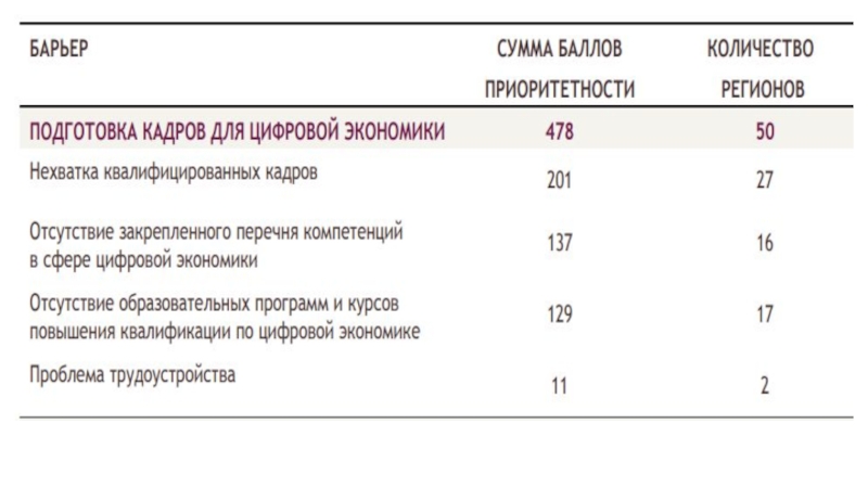 Барьеры в развитии цифровой экономики в субъектах Российской Федерации