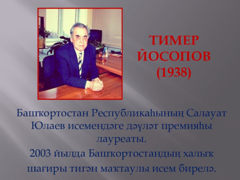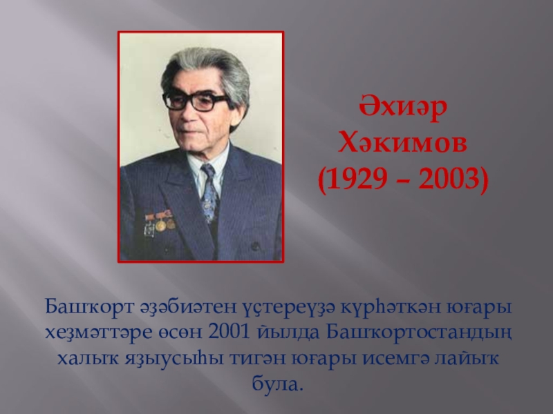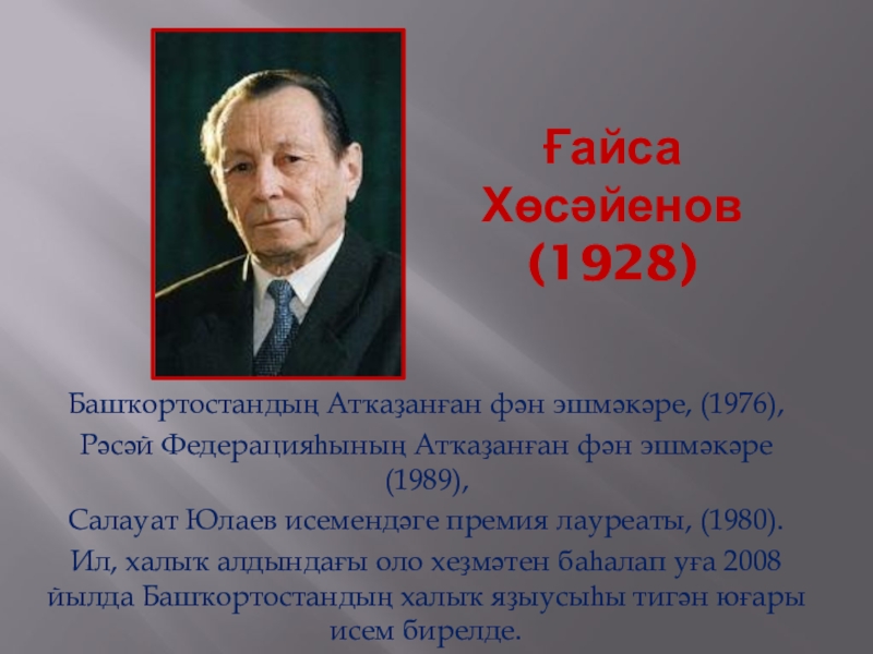 Башҡортостандың халыҡ яҙыусыһы тигән юғары исемгә лайыҡ була.