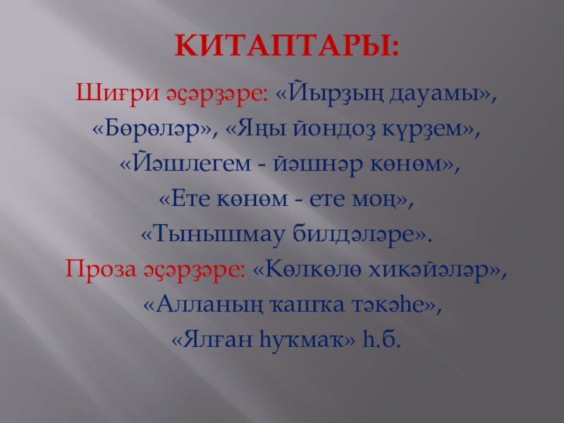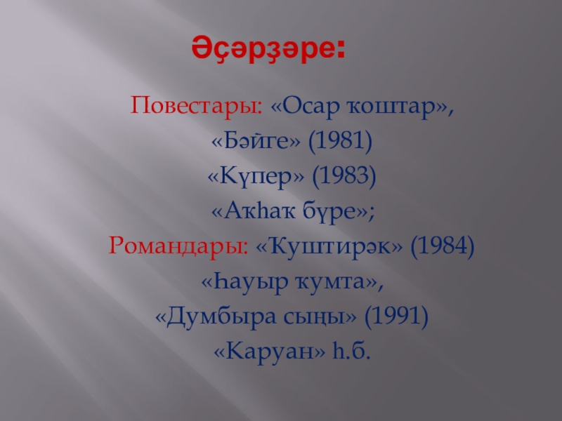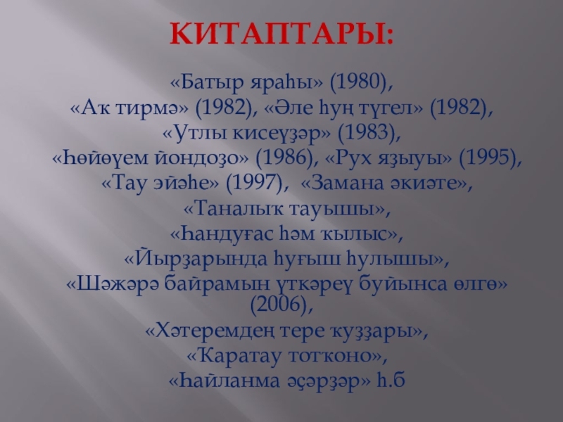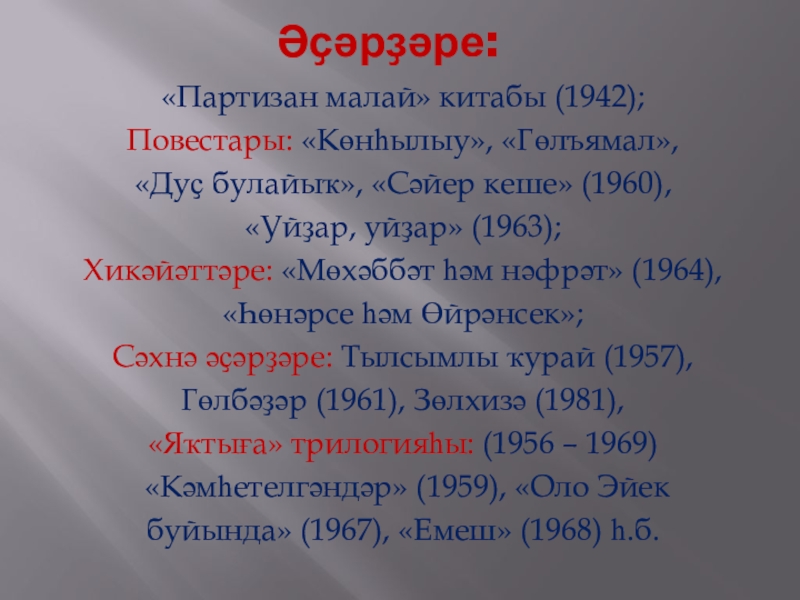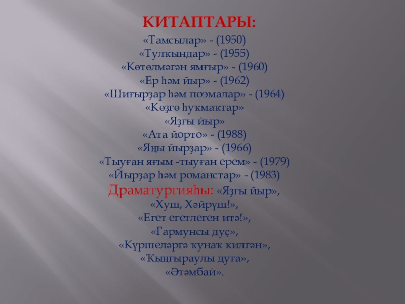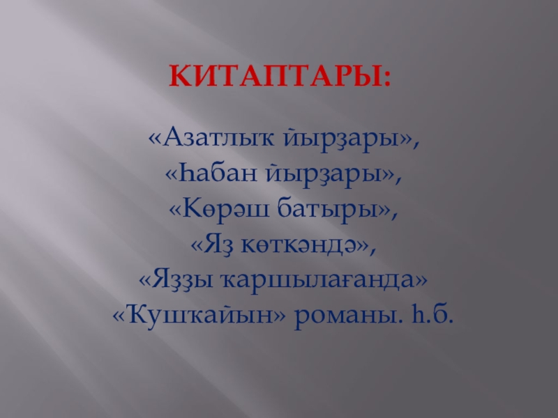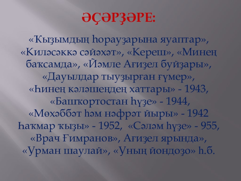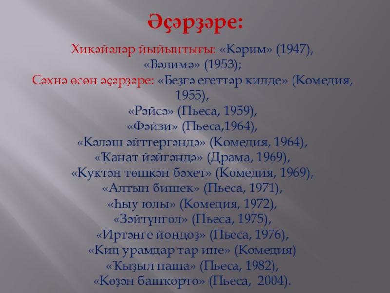 Слайд 32Хикәйәләр йыйынтығы: «Кәрим» (1947),