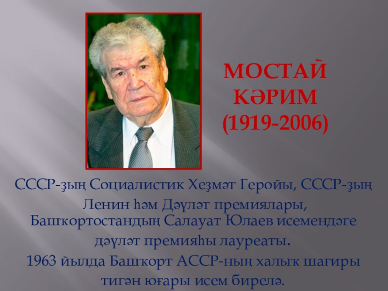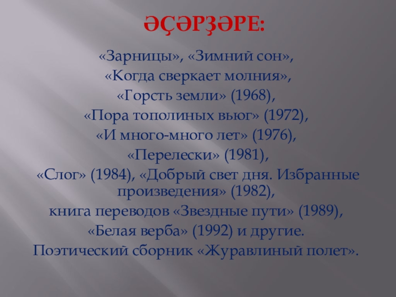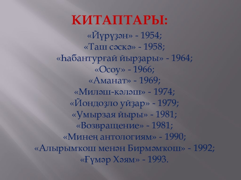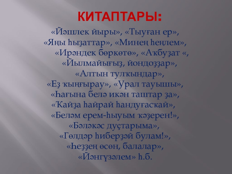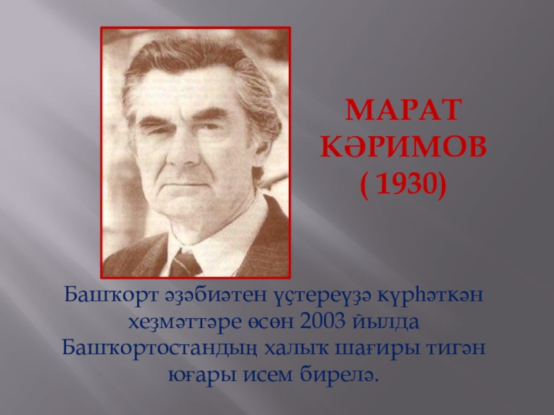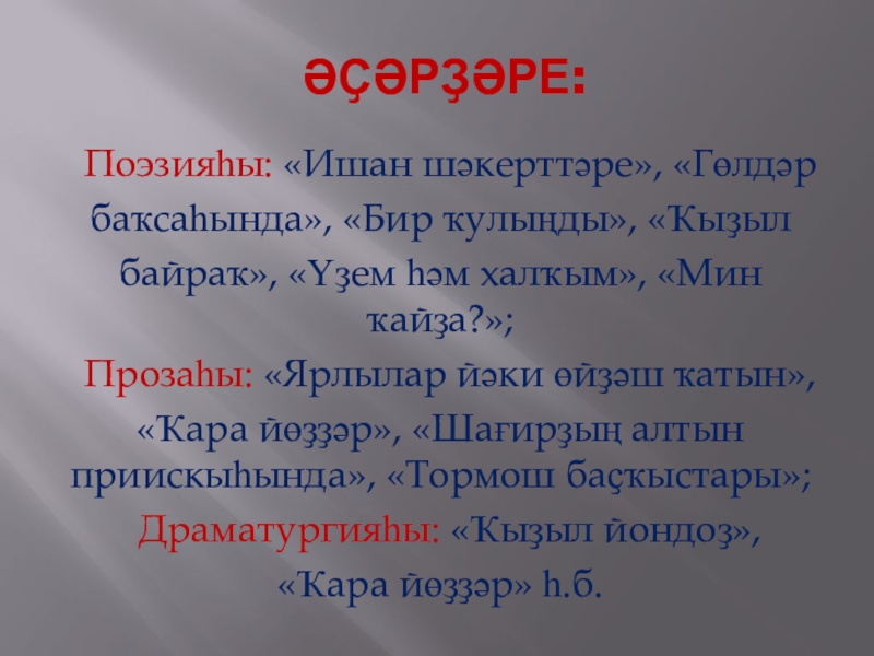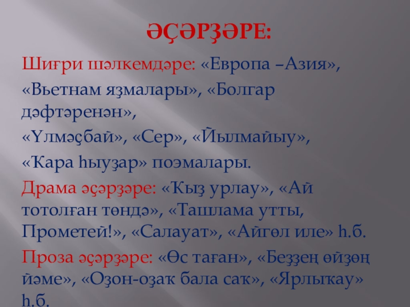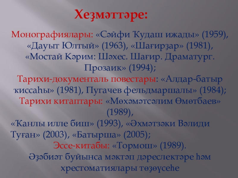 Слайд 32Хикәйәләр йыйынтығы: «Кәрим» (1947),