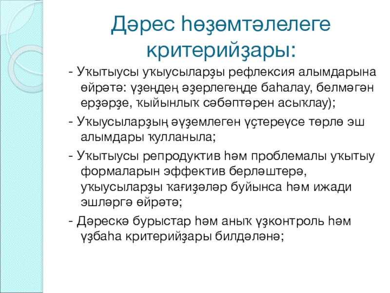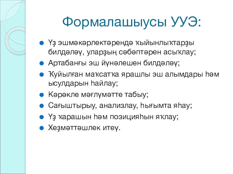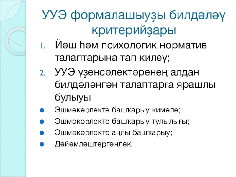 Слайд 69УУЭ формалашыуҙы билдәләү критерийҙары