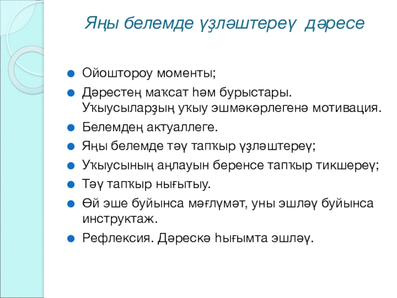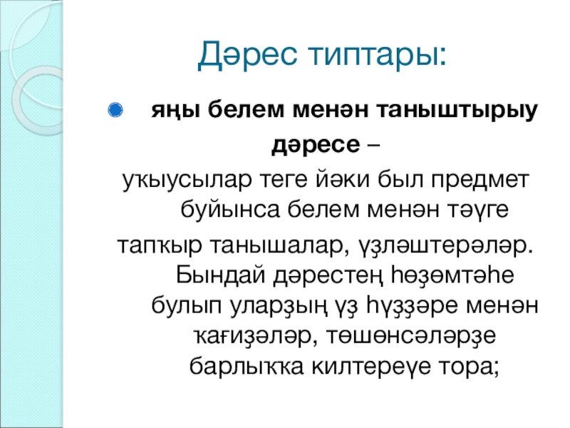 тапҡыр танышалар, үҙләштерәләр. Бындай дәрестең һөҙөмтәһе булып уларҙың үҙ һүҙҙәре менән ҡағиҙәләр, төшөнсәләрҙе барлыҡҡа килтереүе тора;
