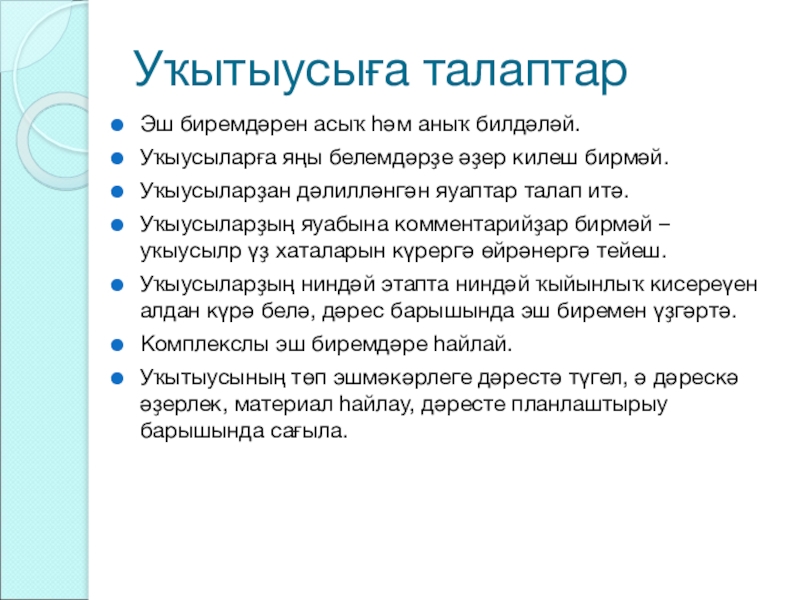 алдан билдәләнгән талаптарға ярашлы булыуы