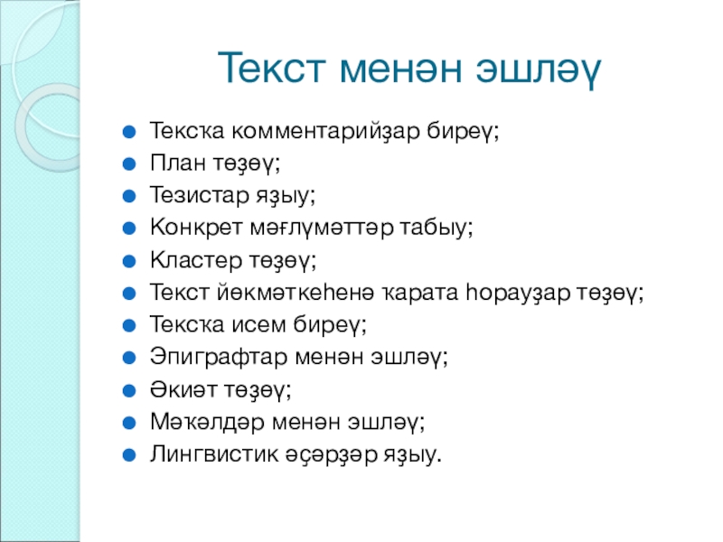 Текстың йөкмәткеһен тулы, һайланма һәм ҡыҫҡаса һөйләй, текст төҙөй белеү.