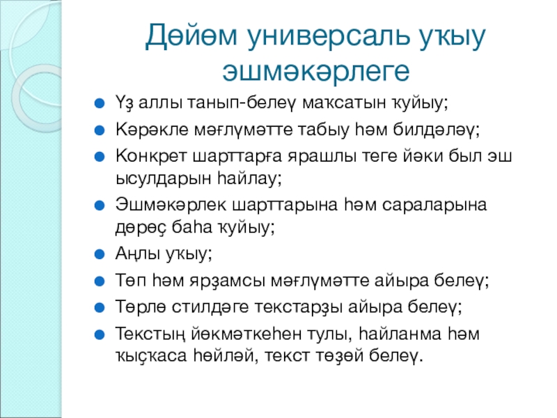 Слайд 58Дөйөм универсаль уҡыу эшмәкәрлеге