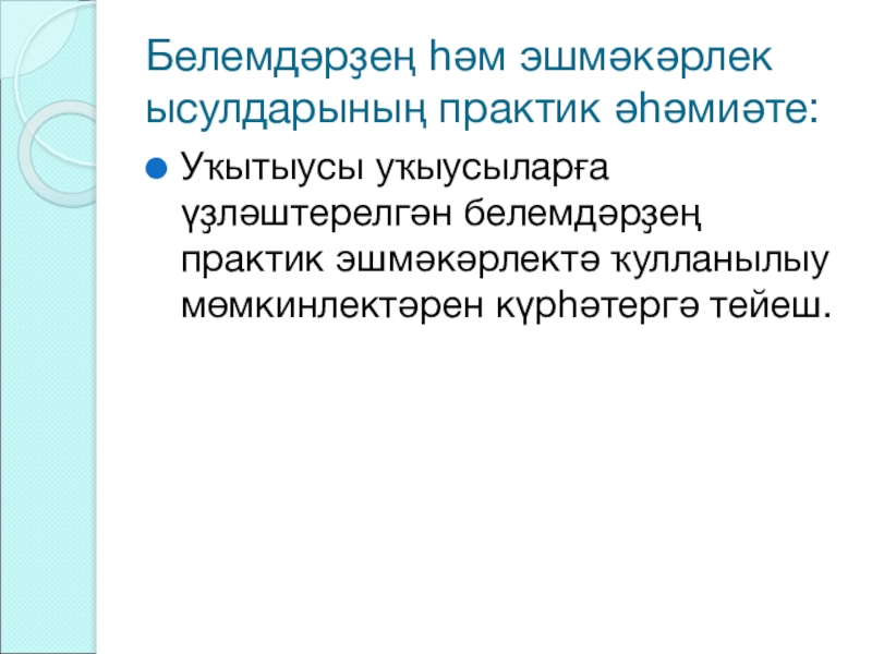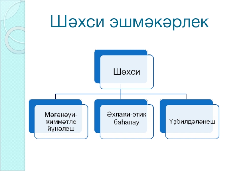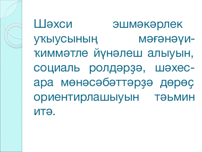Слайд 55Шәхси эшмәкәрлек уҡыусының мәғәнәүи-ҡиммәтле йүнәлеш алыуын, социаль ролдәрҙә, шәхес-ара мөнәсәбәттәрҙә дөрөҫ
