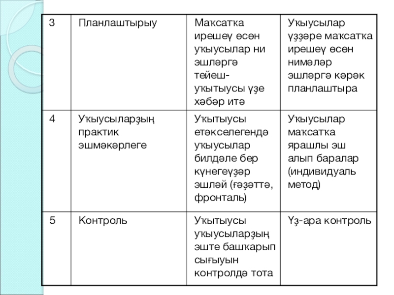 Ҡуйылған маҡсатҡа ярашлы эш алымдары һәм ысулдарын һайлау;