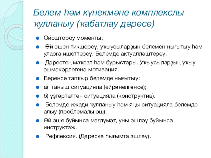 алған белемдәрҙе ҡабатлау, нығытыу маҡсаты ҡуйыла, уҡыусылар хатаһыҙ