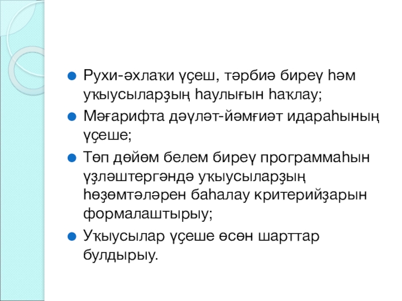 яңы ижтимағи тормош талаптарына яуап бирерлек йәш быуын тәрбиәләү;