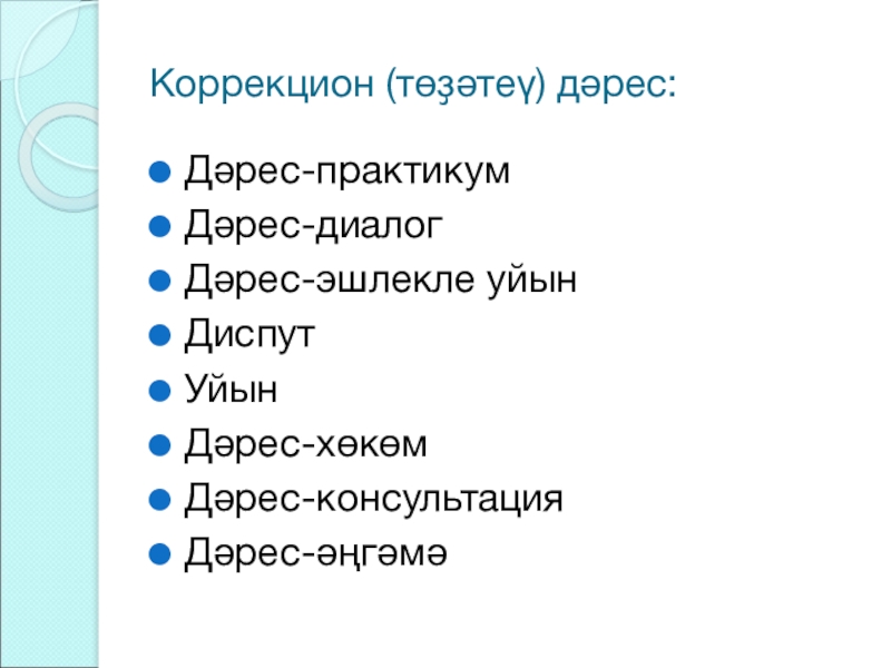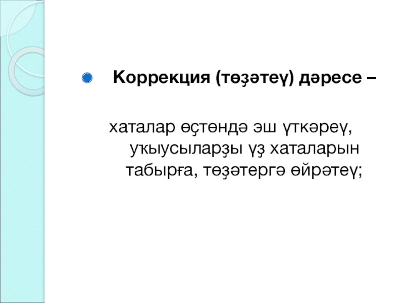 Слайд 20Коррекцион (төҙәтеү) дәрес:
