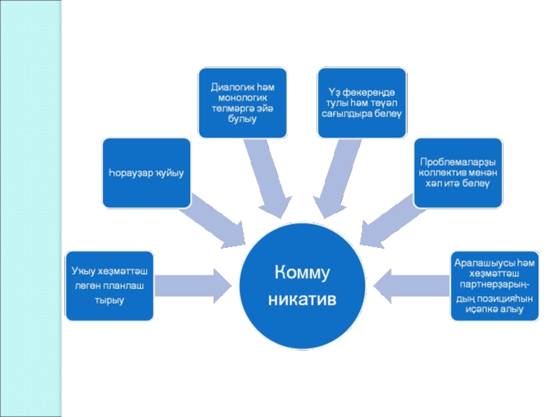 Коммуникатив: әңгәмә ҡора белеү, үҙ фекереңде сағылдыра алыу, икенсе кешеләрҙе тыңлай белеү;
