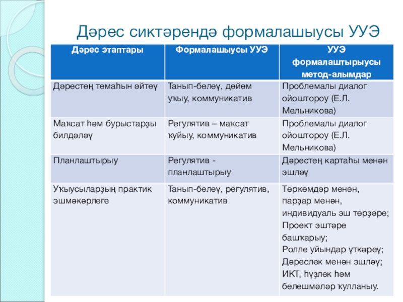 Слайд 70Дәрес сиктәрендә формалашыусы УУЭ