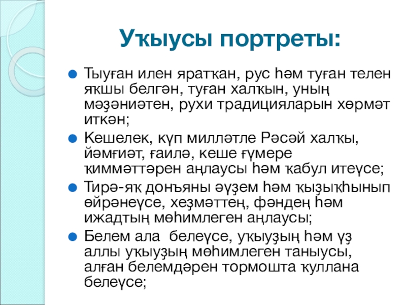 Тыуған илен яратҡан, рус һәм туған телен яҡшы белгән, туған