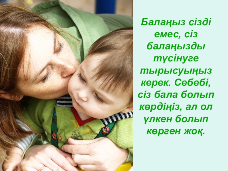 Слайд 11Балаңыз сізді емес, сіз балаңызды түсінуге тырысуыңыз керек. Себебі, сіз бала