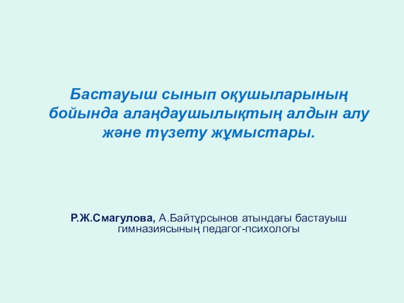 Слайд 2Бастауыш сынып оқушыларының бойында алаңдаушылықтың алдын алу және түзету жұмыстары.