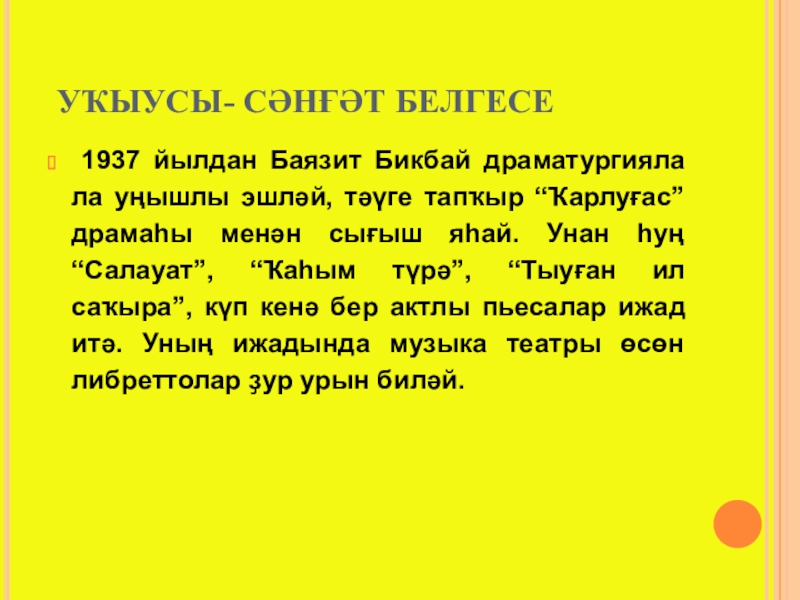1937 йылдан Баязит Бикбай драматургияла ла уңышлы