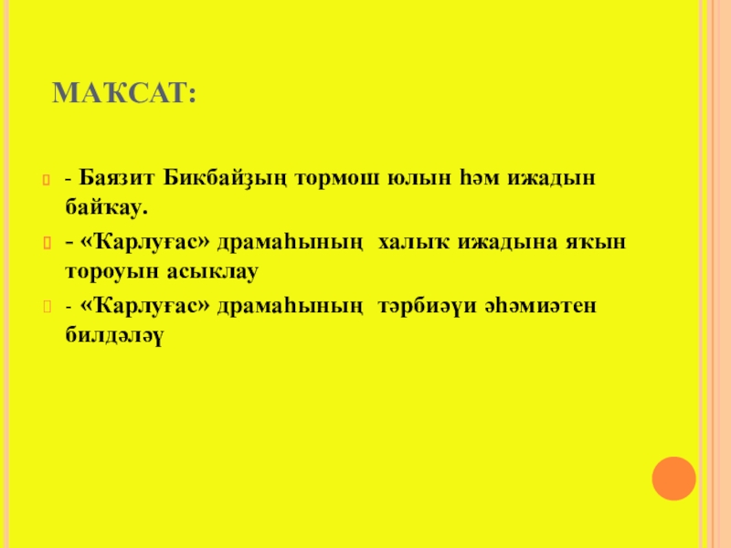 - Баязит Бикбайҙың тормош юлын һәм ижадын байҡау.