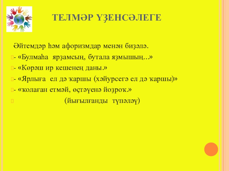 Слайд 16ТЕЛМӘР ҮҘЕНСӘЛЕГЕ