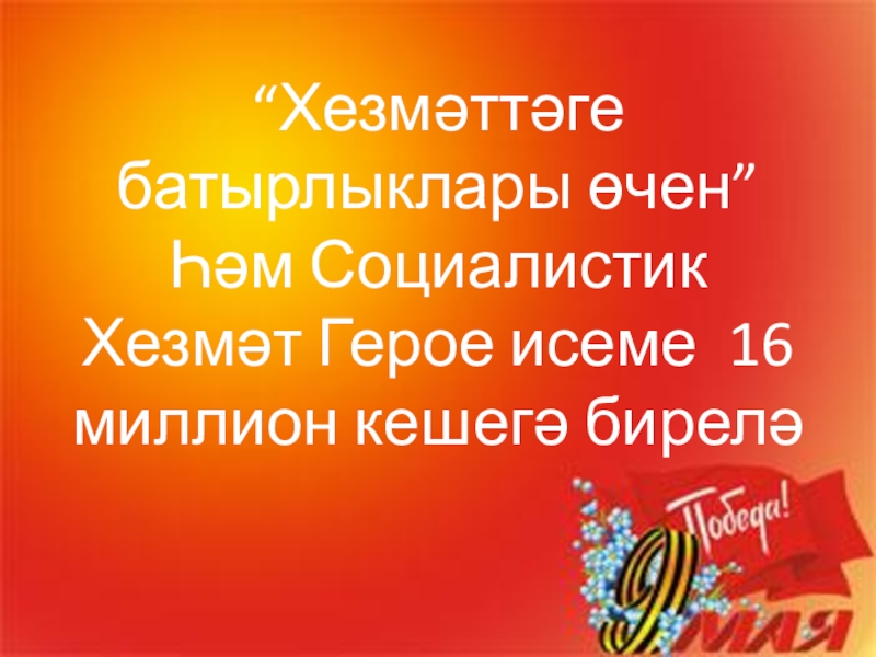 Слайд 12“Хезмәттәге батырлыклары өчен” Һәм Социалистик Хезмәт Герое исеме 16 миллион кешегә