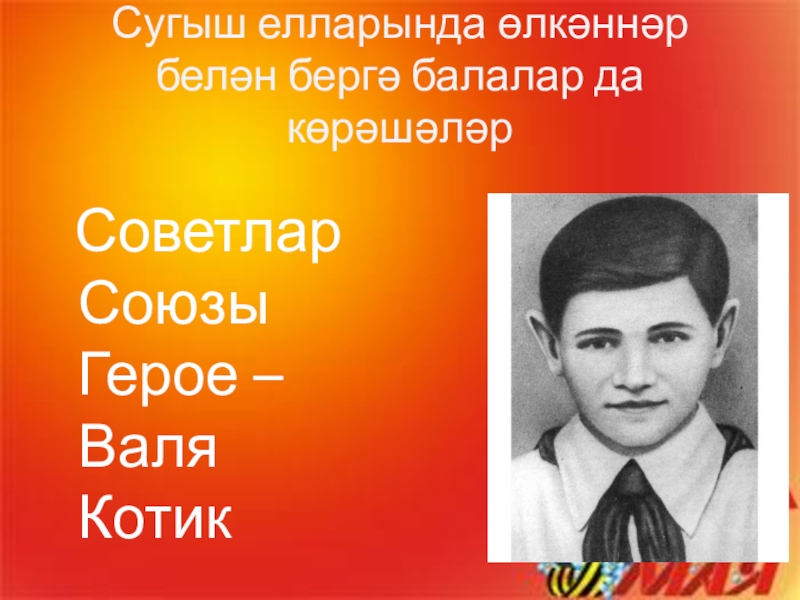 Сугыш елларында өлкәннәр белән бергә балалар да көрәшәләр Советлар Союзы Герое – Валя Котик