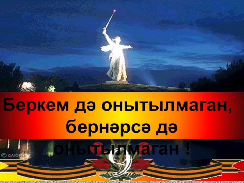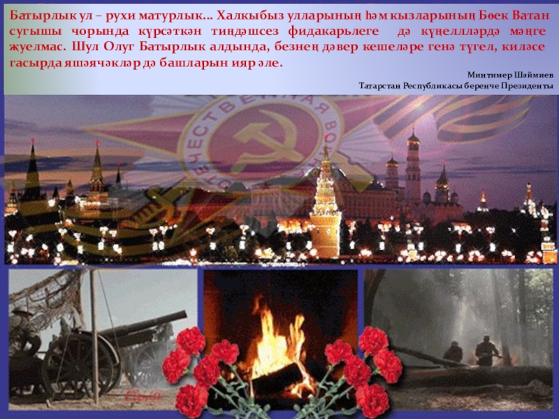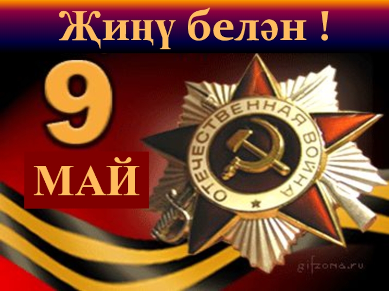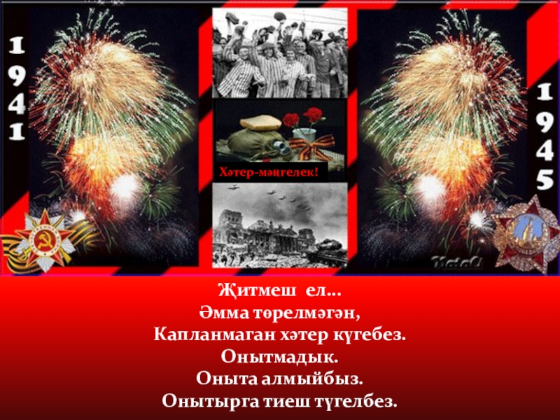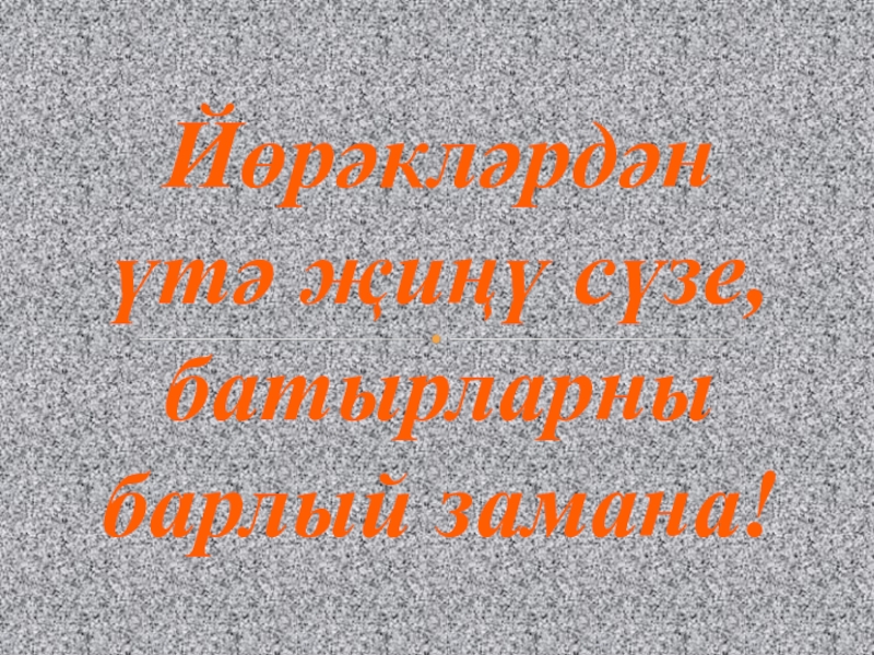 Слайд 1Йөрәкләрдән үтә җиңү сүзе, батырларны барлый замана!