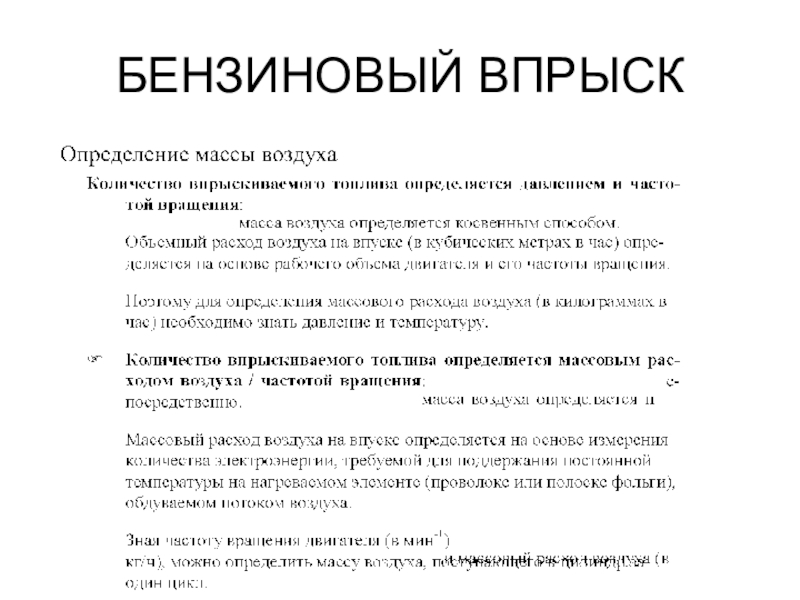 Количество впрыскиваемого топлива определяется массовым расходом воздуха и частотой вращения коленчатого вала ДВС.