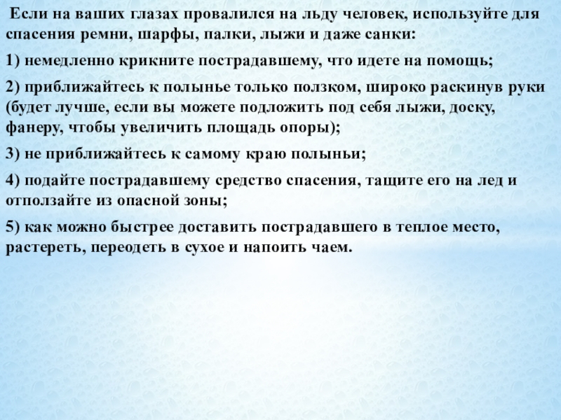 Слайд 7 Если на ваших глазах провалился на льду человек, используйте для