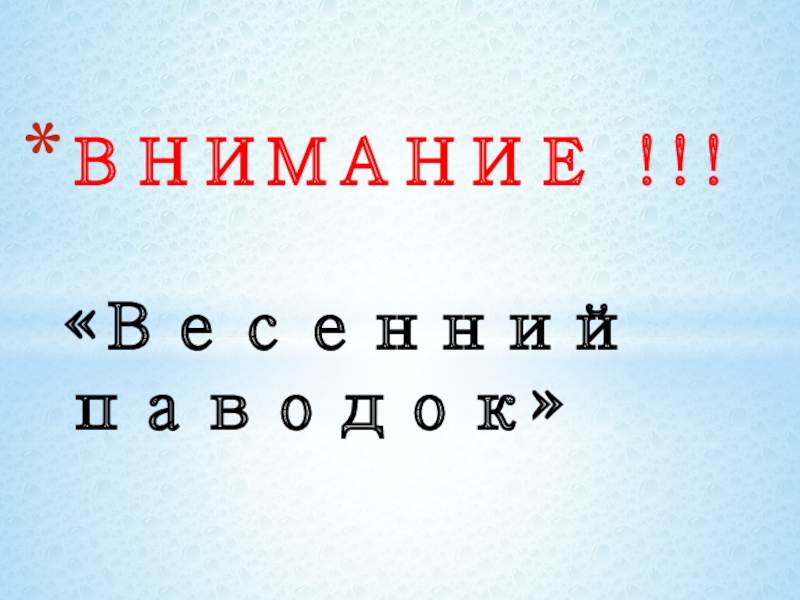 Слайд 1ВНИМАНИЕ !!! «Весенний паводок»