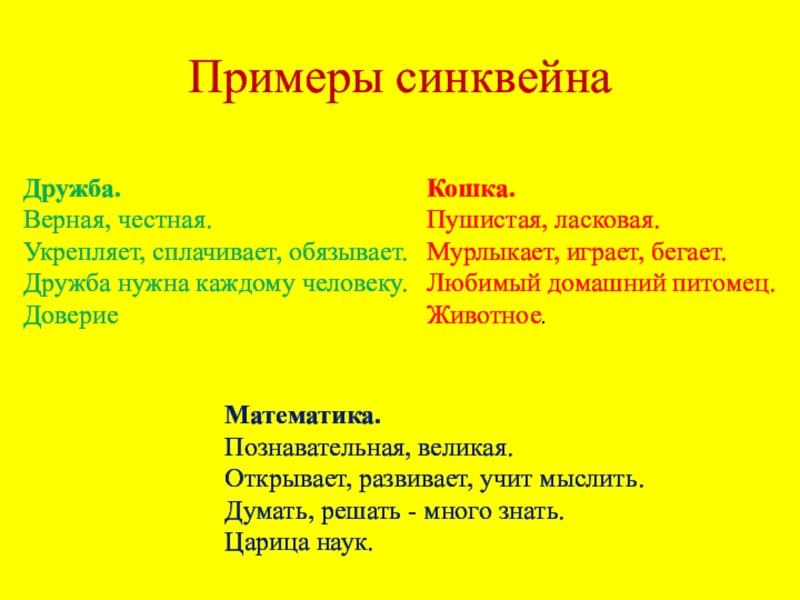 Вторая строка. 2 слова – описание этого понятия (прилагательные).