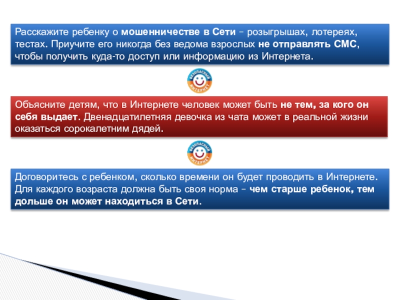 Недостаточно информированный об опасности в сети ребенок может сообщить злоумышленнику номер кредитной карты родителей, пароль от электронного кошелька, свой настоящий адрес и многое другое.
