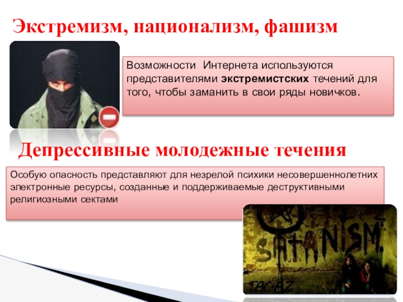 Особую опасность представляют для незрелой психики несовершеннолетних электронные ресурсы, созданные и поддерживаемые деструктивными религиозными сектами