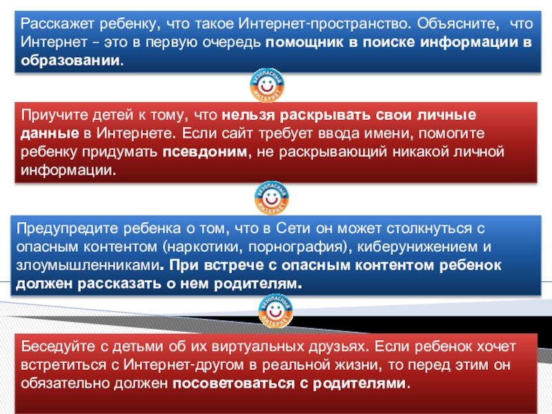 Расскажет ребенку, что такое Интернет-пространство. Объясните, что Интернет – это в первую очередь помощник в поиске информации в образовании.