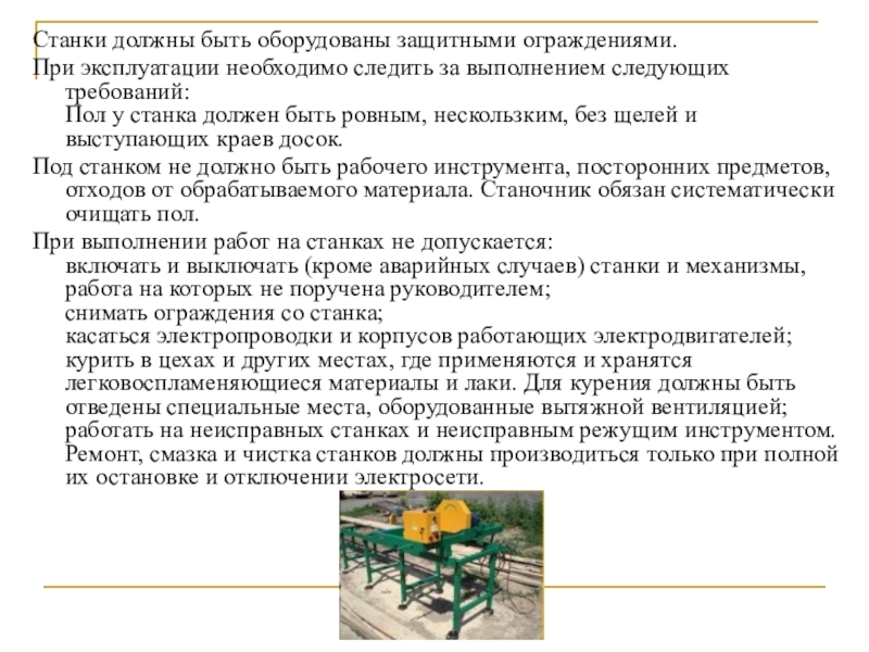 Пол у станка должен быть ровным, нескользким, без щелей и выступающих краев досок.