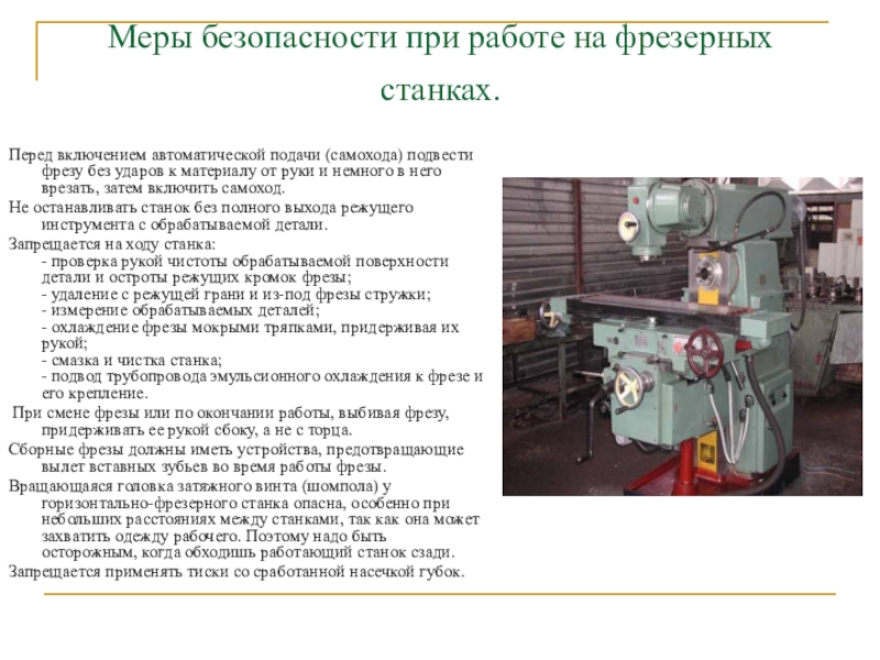 Слайд 6Меры безопасности при работе на фрезерных станках.