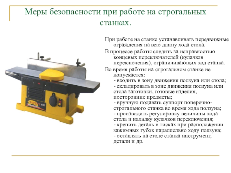 Слайд 7Меры безопасности при работе на строгальных станках.