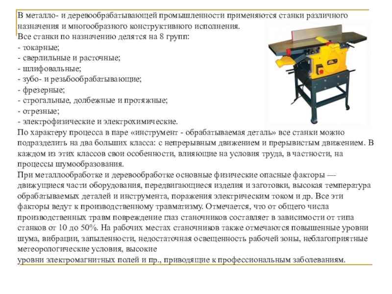 Слайд 3В металло- и деревообрабатывающей промышленности применяются станки различного назначения и многообразного