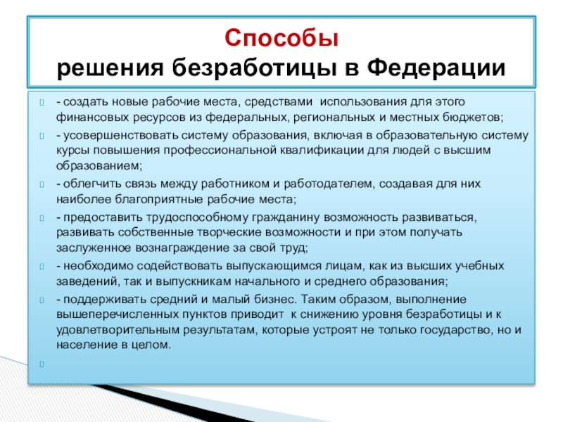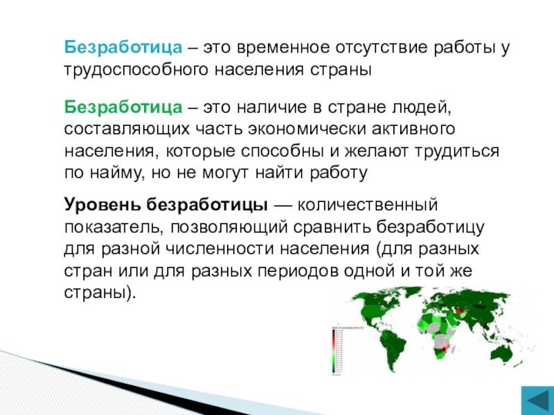 Безработица – это временное отсутствие работы у трудоспособного населения страны