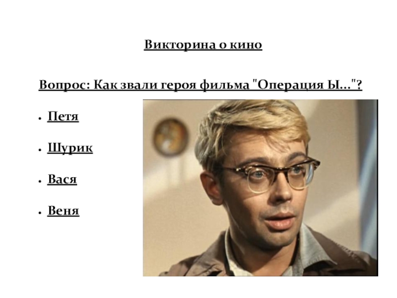 Слайд 54Вопрос: Как звали героя фильма "Операция Ы..."?
