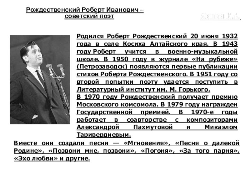Слайд 30Рождественский Роберт Иванович – советский поэт