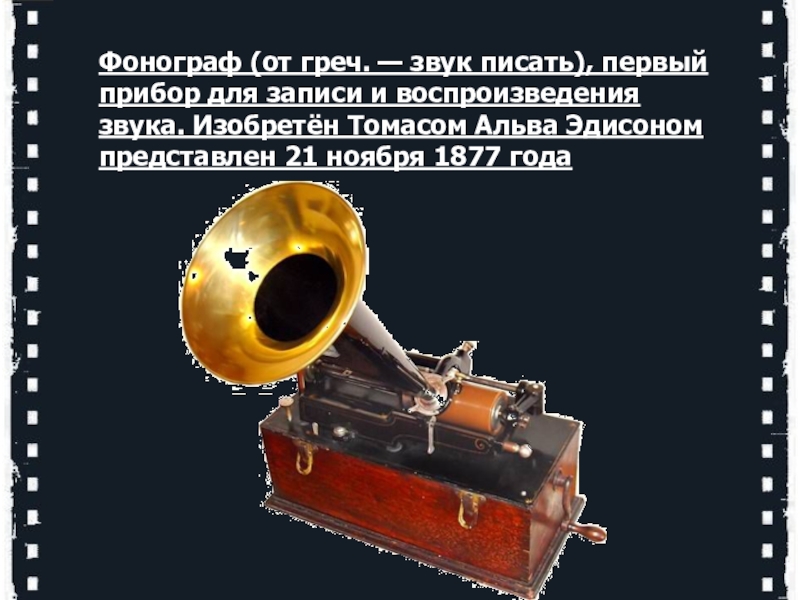 звука. Изобретён Томасом Альва Эдисоном представлен 21 ноября 1877 года