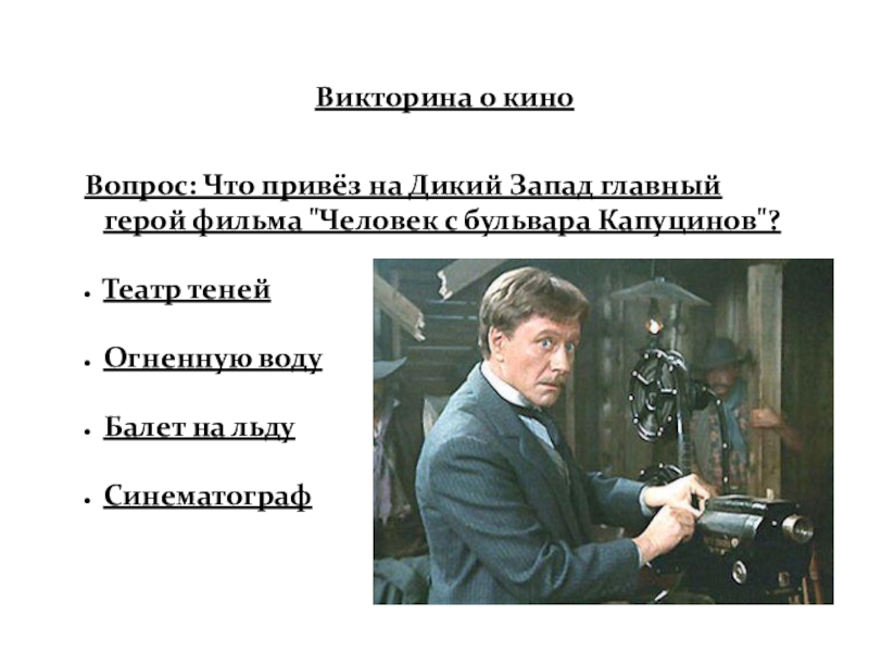 Слайд 66Вопрос: Что привёз на Дикий Запад главный герой фильма "Человек с