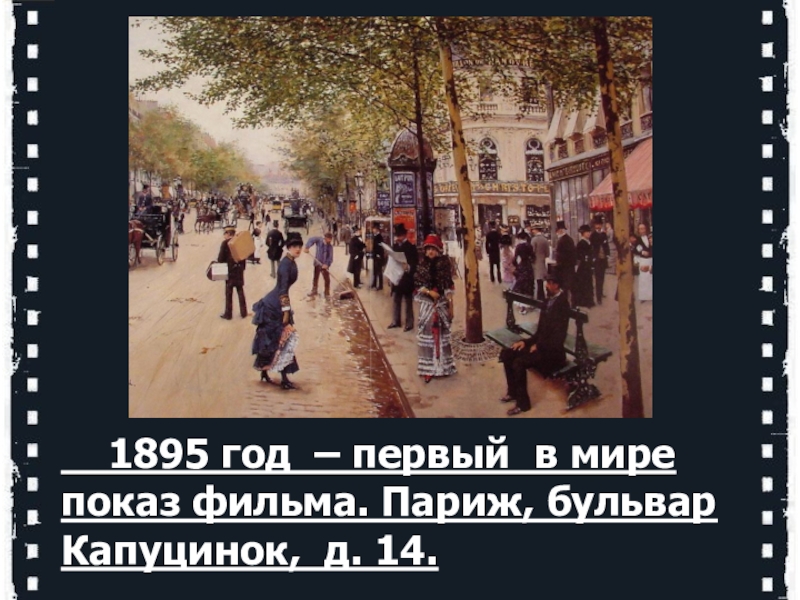 Слайд 11 1895 год – первый в мире показ фильма. Париж,