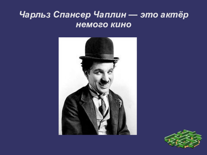 Слайд 15Чарльз Спансер Чаплин — это актёр немого кино