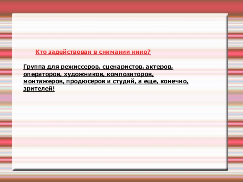 Слайд 17 Кто задействован в снимании кино?