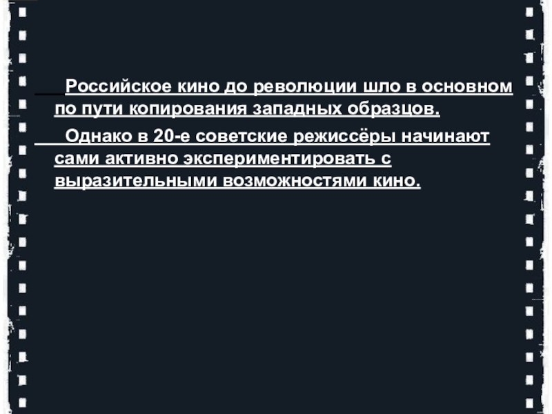 Слайд 20 Российское кино до революции шло в основном по