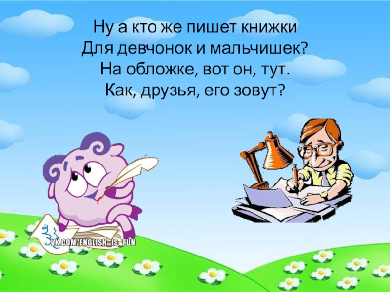 Слайд 24Ну а кто же пишет книжки Для девчонок и мальчишек? На обложке, вот