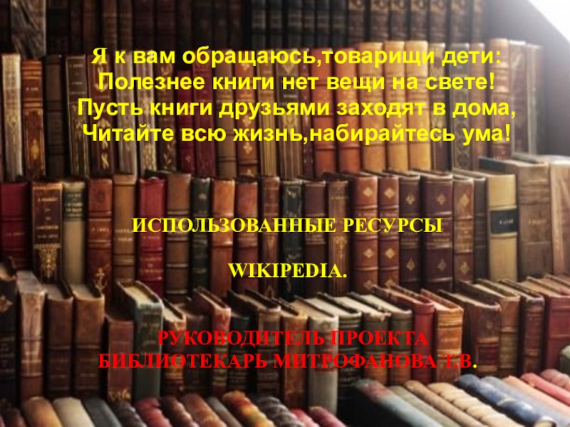 Это сайт презентаций, где можно хранить и обмениваться своими презентациями, докладами, проектами, шаблонами в формате PowerPoint с другими пользователями. Мы помогаем школьникам, студентам, учителям, преподавателям хранить и обмениваться учебными материалами.