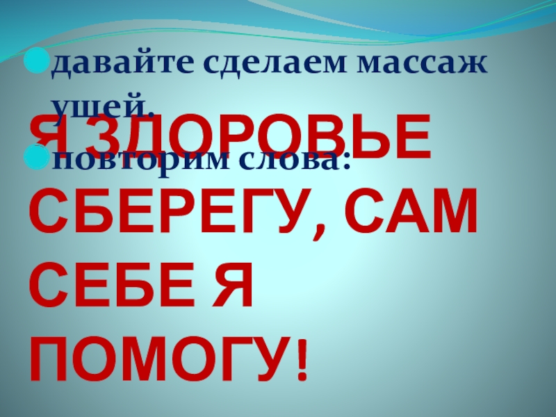 Я ЗДОРОВЬЕ СБЕРЕГУ, САМ СЕБЕ Я ПОМОГУ!давайте сделаем массаж ушей.повторим слова: